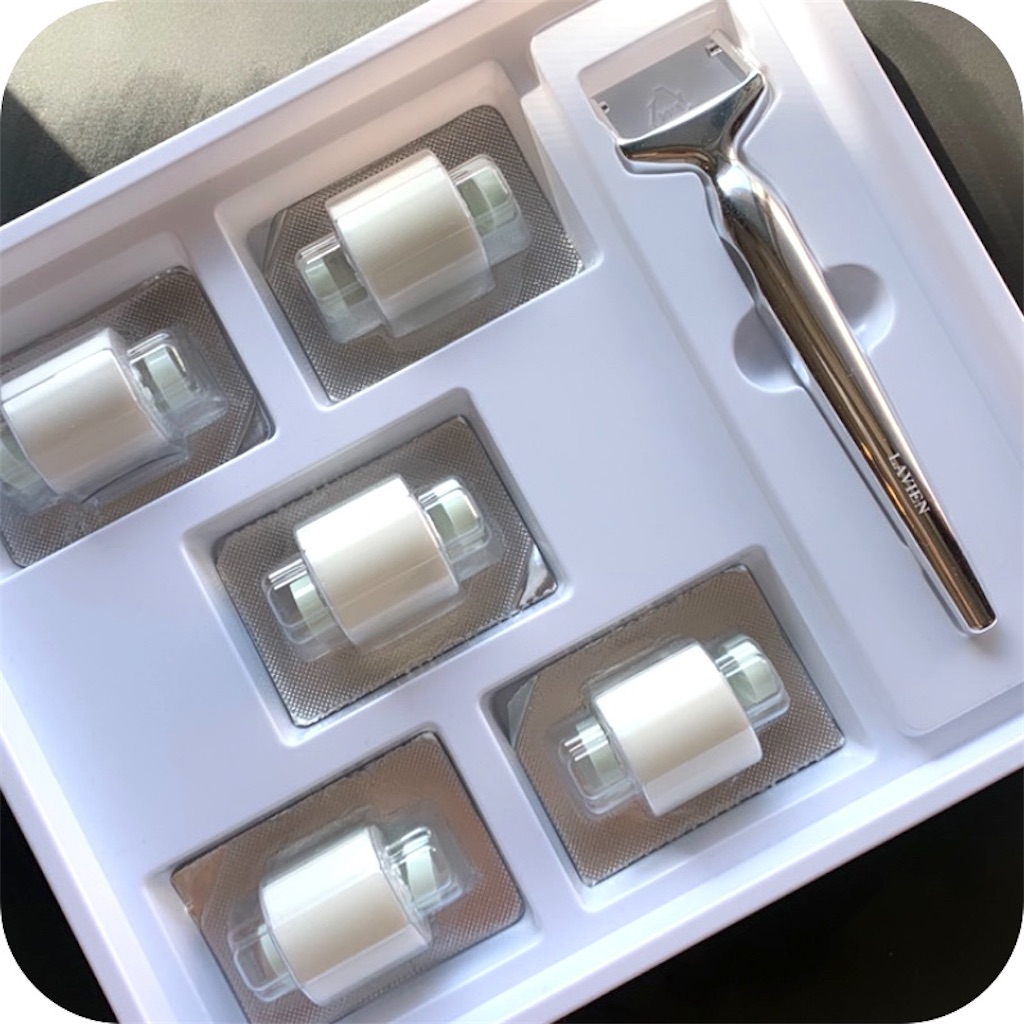 プチプラのダーマローラーと比べて最初はお値段にびっくりしたんですが、それもそのはずな理由がありまして、なんと針じゃなくてトゲトゲ自体がヒアルロン酸、ペプチドソリューションなどの美容成分でできてるんです!!